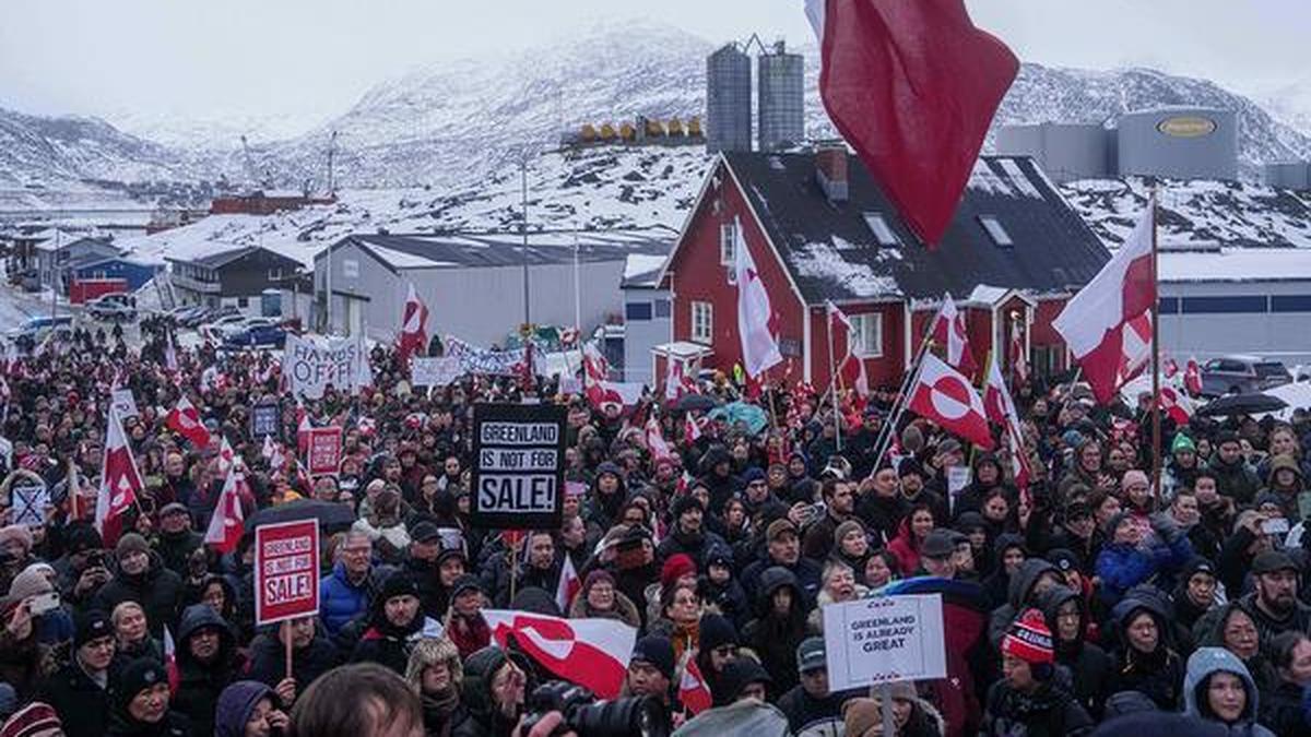 People protest against Donald Trump’s policy towards Greenland in front of the U.S. consulate in Nuuk, Greenland, on January 17, 2026. | Photo Credit: AP